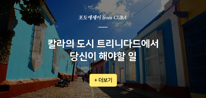 다양한 색이 살아 숨쉬는 곳 쿠바 트리니다드에서는 나만의 개성이 넘쳐 흐릅니다. 남의 시선과 평가에 신경쓰다 결국 나를 잃어버리기 일쑤인 사회에서 어쩌면 개성을 찾기란 어려운 일일지도 모르겠습니다.