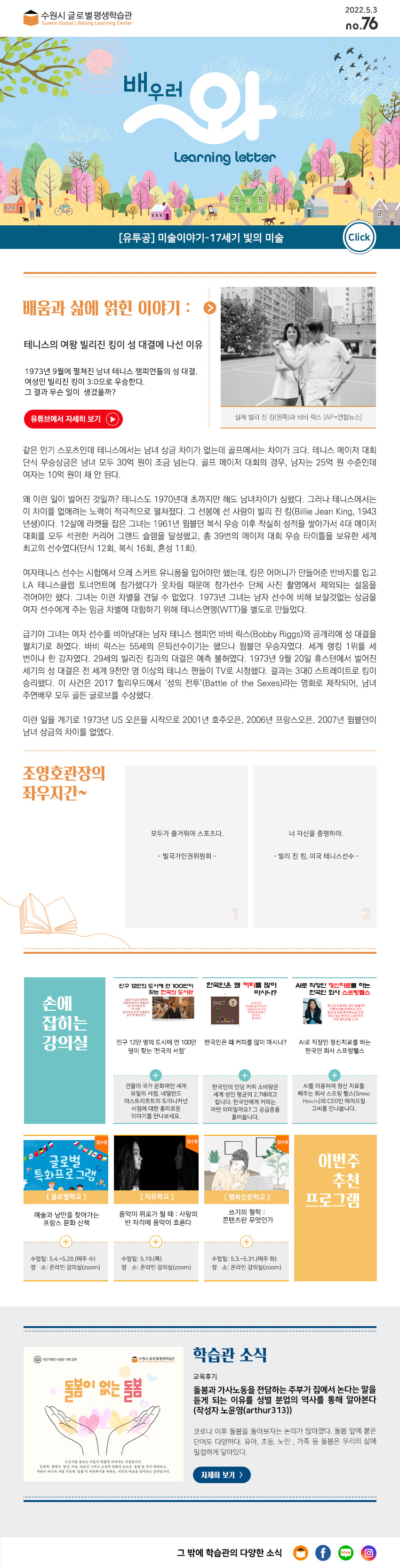 러닝레터 [No.76] 테니스의 여왕 빌리진 킹이 성대결을 펼친 이유