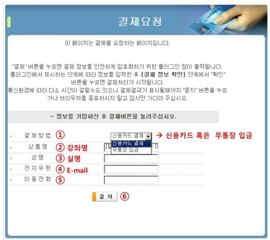 3. 유료강좌 수강신청방법(신용카드 혹은 무통장입금)
