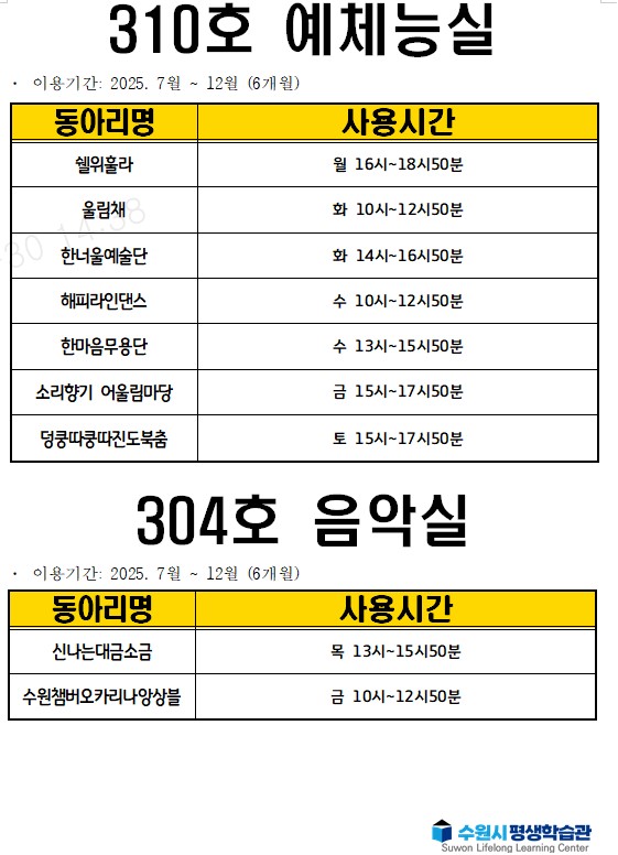 2025년 하반기(7월~12월) 공간사용 결과를 아래와 같이 공지 합니다.