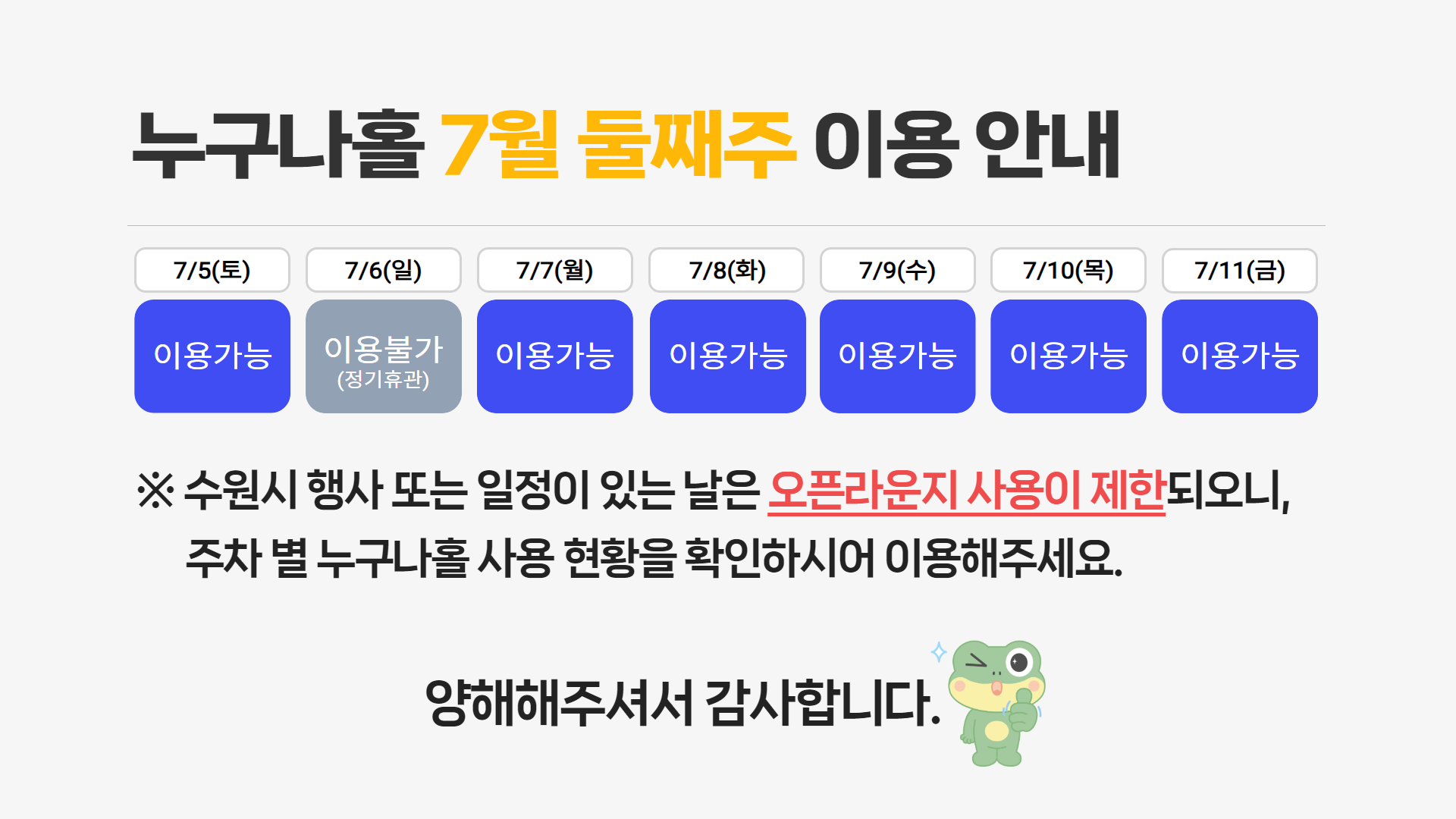 [누구나홀] 7월 둘째주 이용 안내
