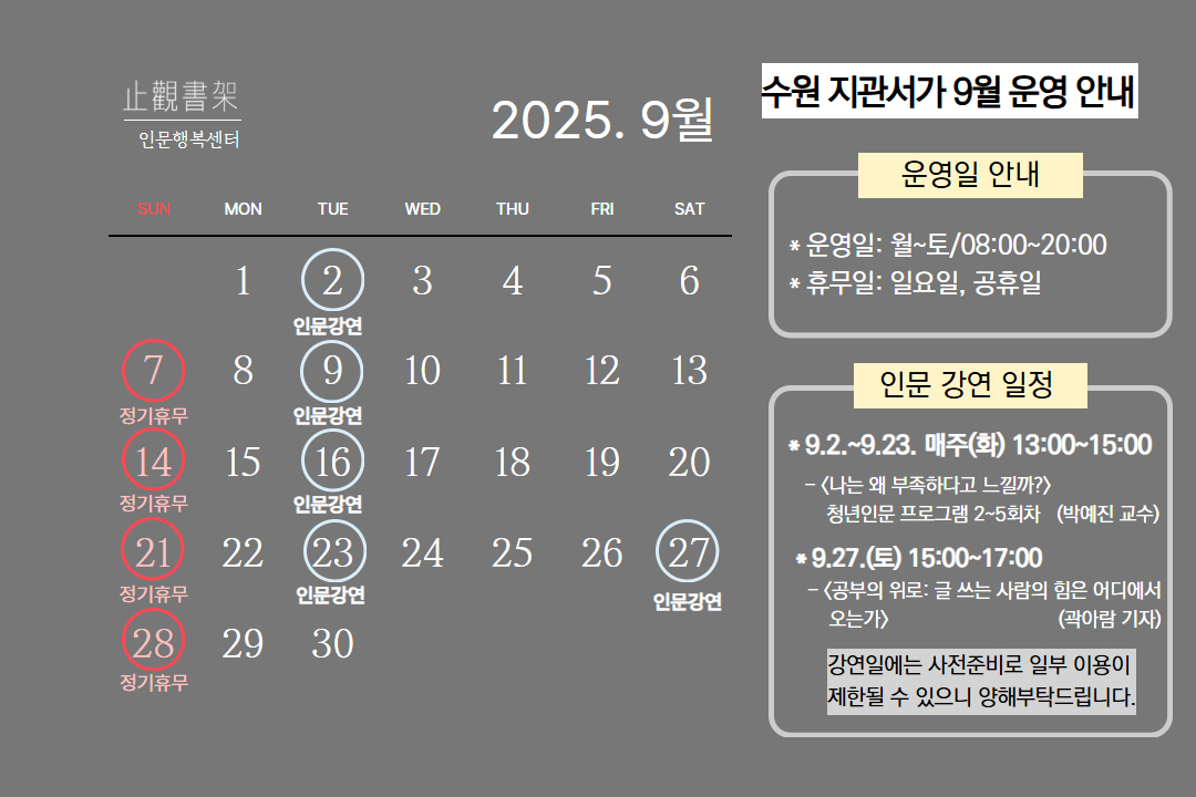 [수원지관서가] 9월 운영 안내