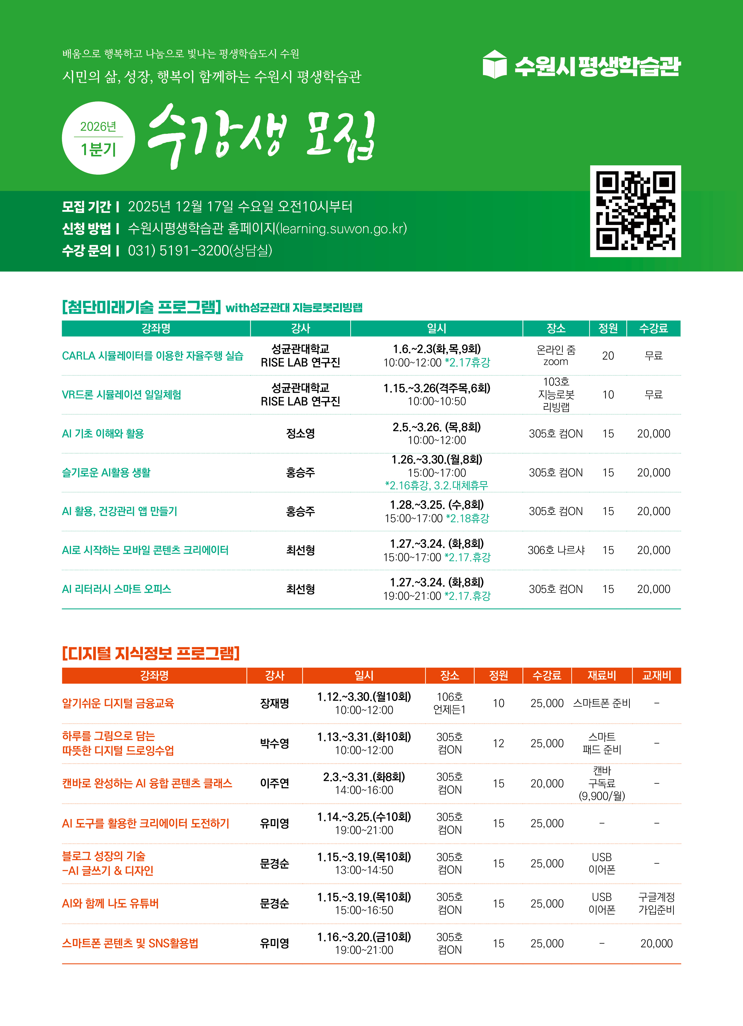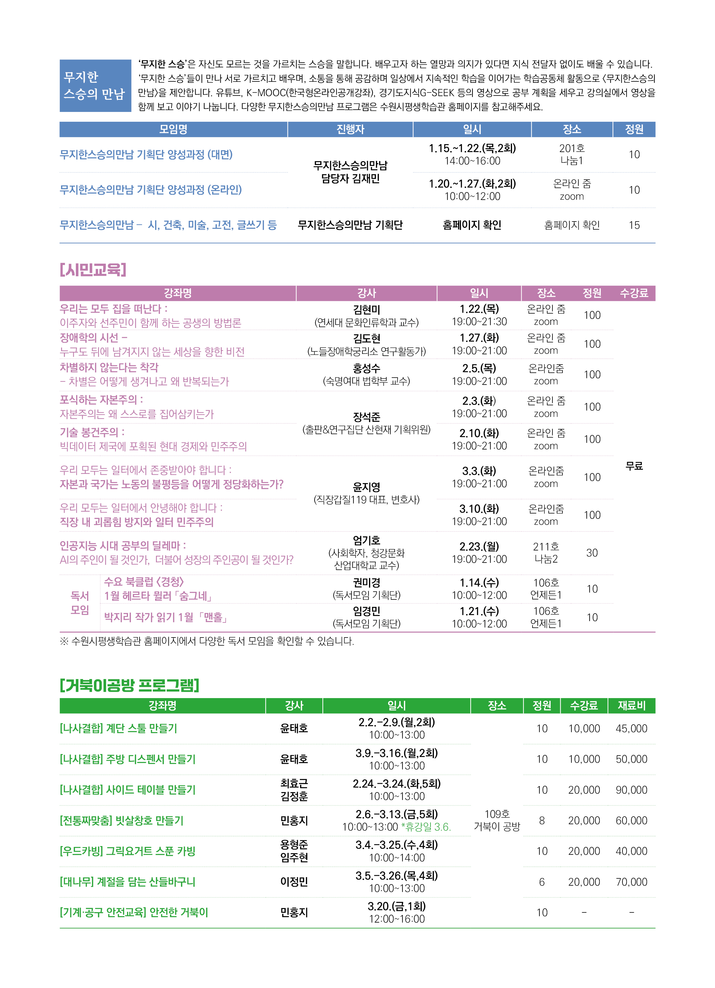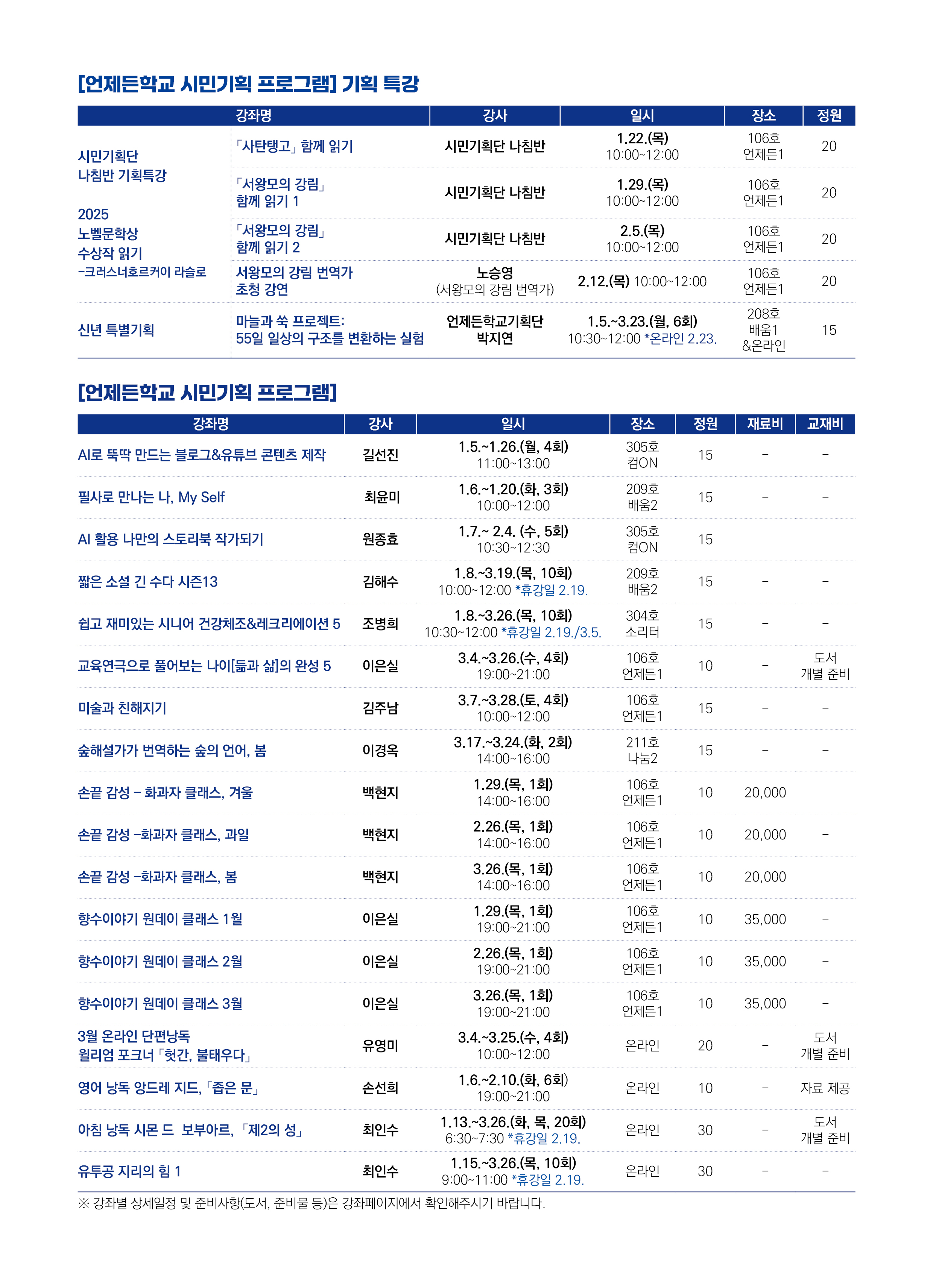 정원 제한이 없는 일부 무료 특강(온라인) 한해 사전 접수 예정