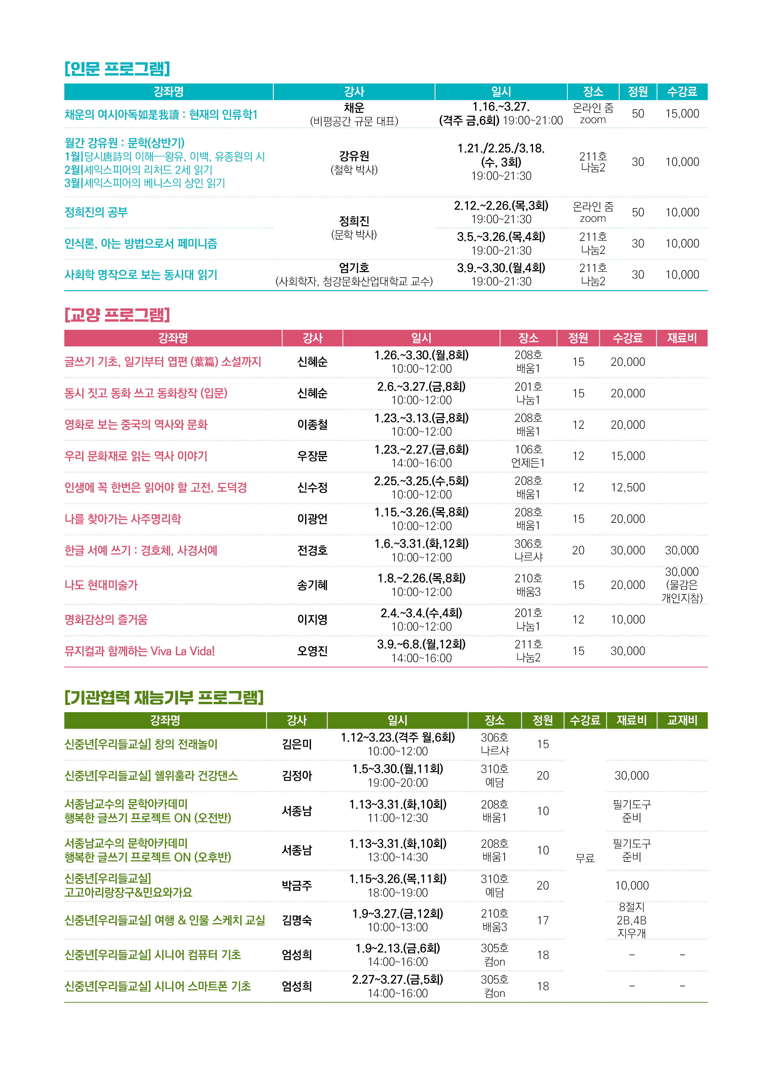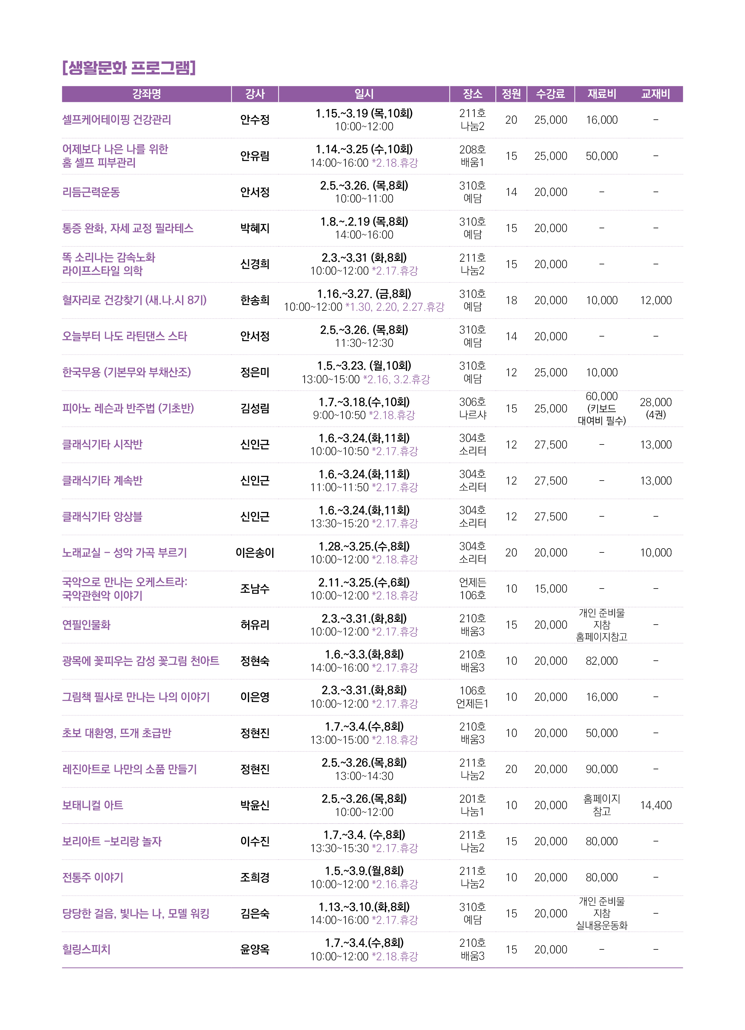 1.17.~3.14.(토,8회/2.14휴강) 오전10-12시