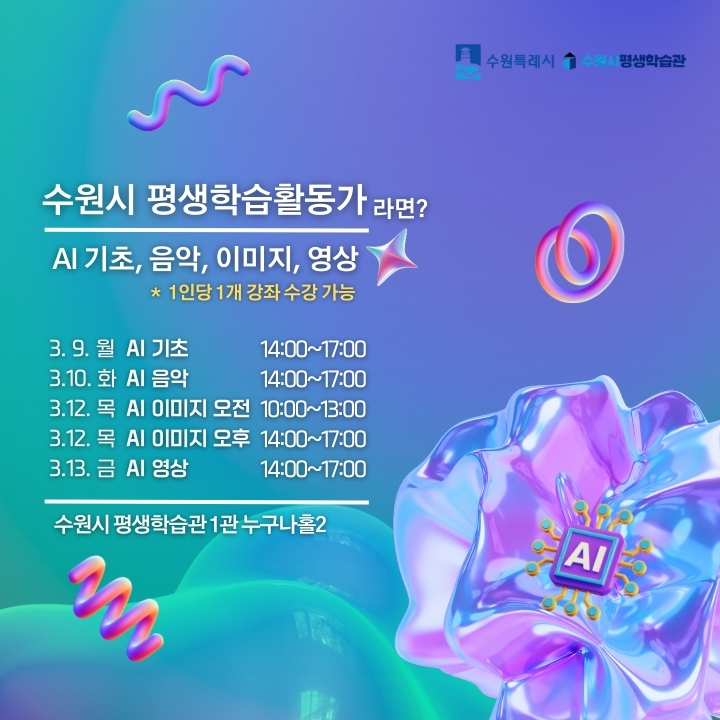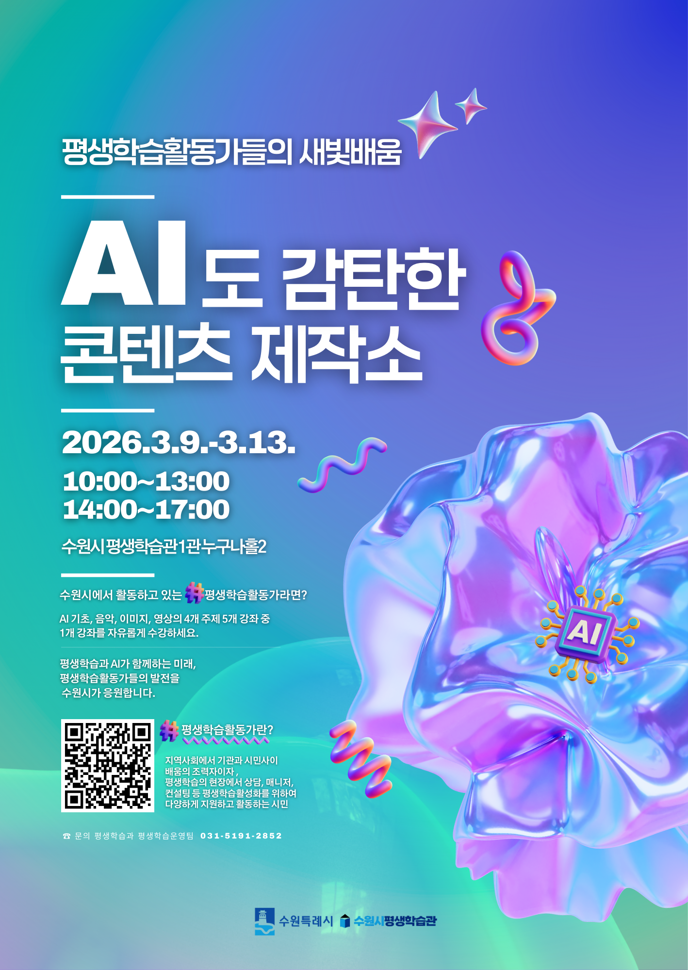 ※ 평생학습 설명회 참석 필수: 2026년 2월 6일(금) 오후 14시 수원시청 대강당 (설명회 참석 확인 불가시  프로그램 수강이 어려울 수 있습니다. )