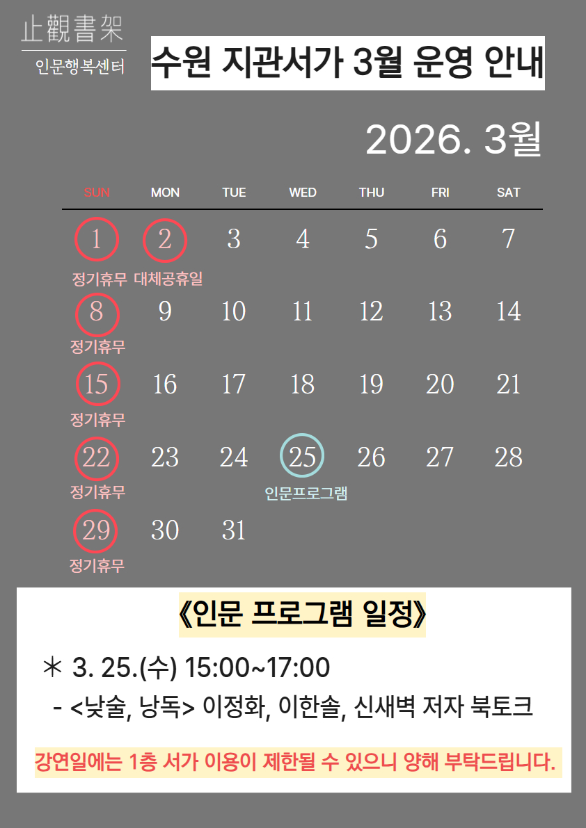[수원지관서가] 3월 운영 안내