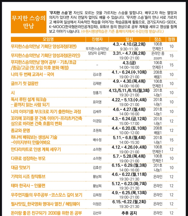 평생학습운영팀 무지한스승의만남&독서모임 기획단 담당자
