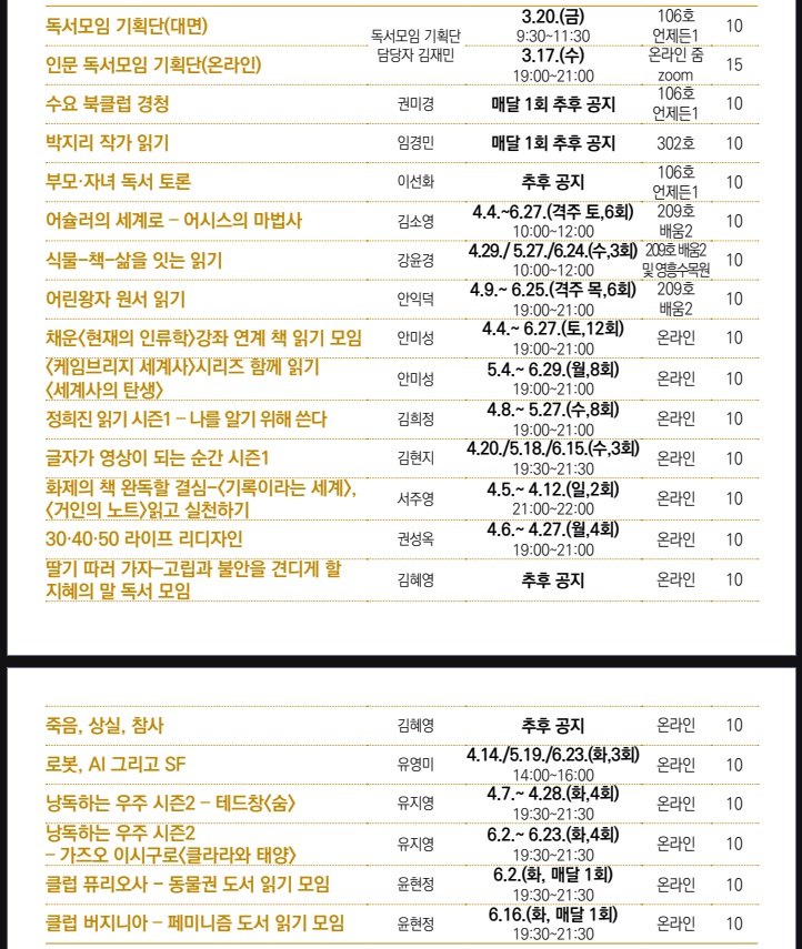 * 2분기 인문 강좌 사전 확인 가능