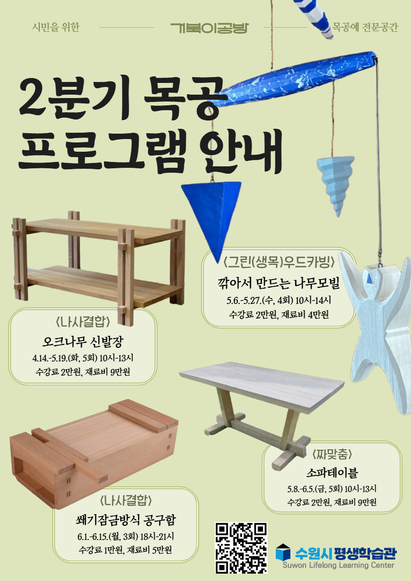 2. 깎아서 만드는 나무모빌 신청 링크 클릭 → 오프라인학습 | 수원시 평생학습포털