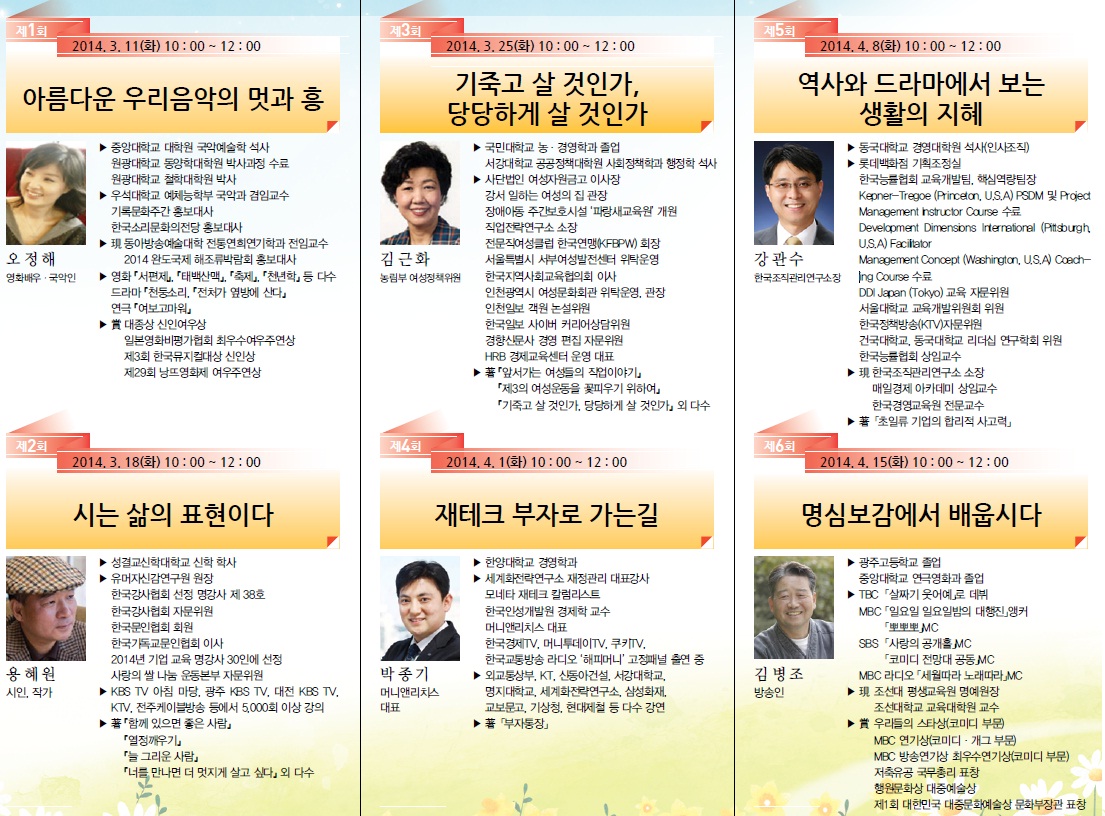 2014 수원시민 인문교양 아카데미 강사 안내