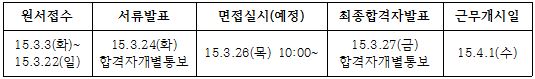 나. 채용기간 : 채용일로부터 2015년 12월 31일까지, 이후 본 기관의 위탁기간 범위 내 1년 단위 재계약