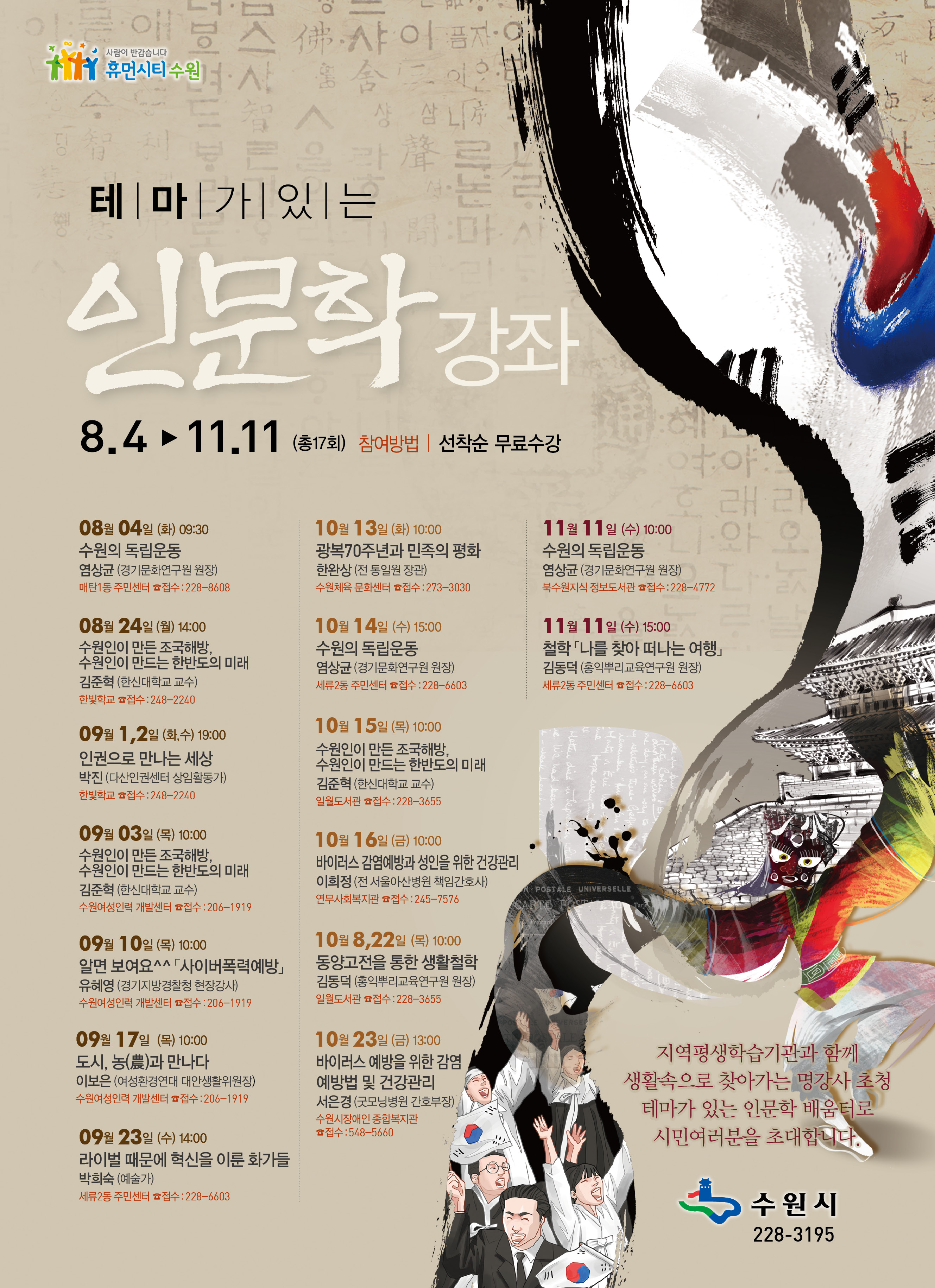 0. 문의 : 수원시 교육청소년과 테마가 있는 인문학 강좌 담당자 031)228-3195