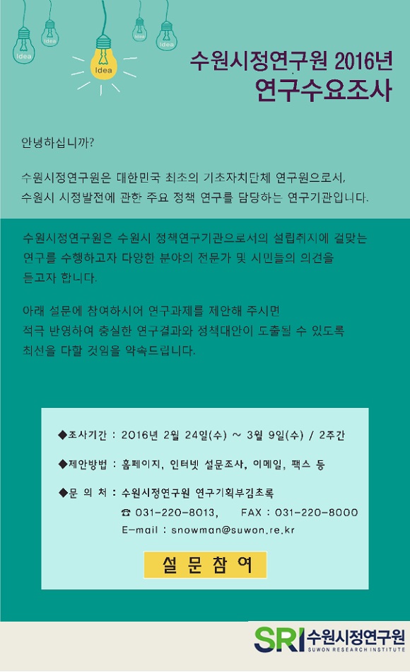 [공지] 수원시정연구원 2016 연구수요조사 실시