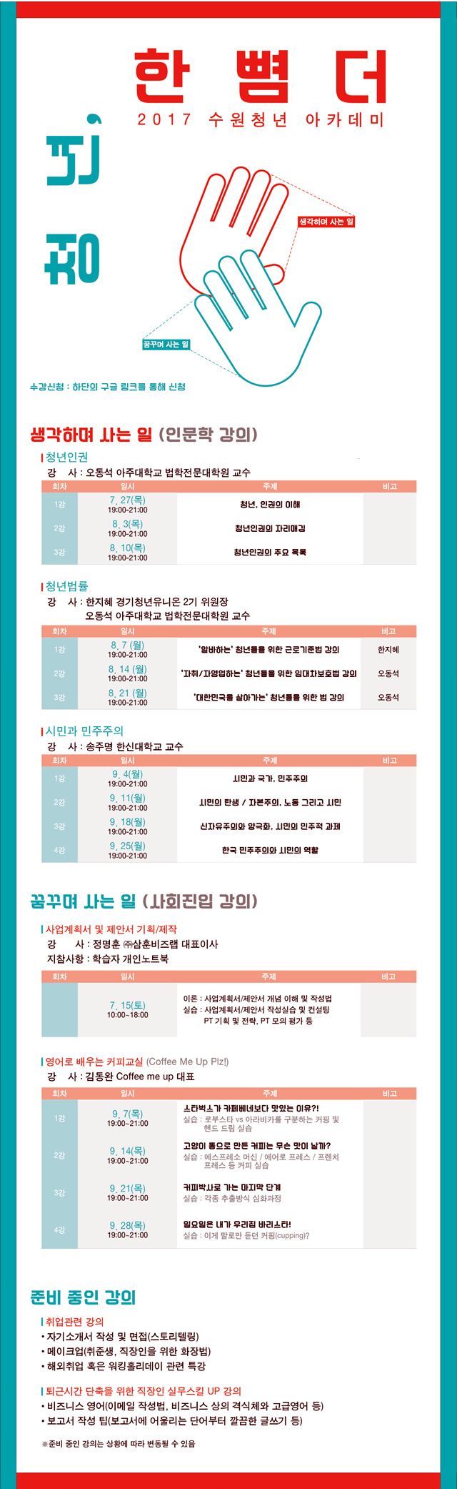 한 뼘 더 성장하고 싶은 수원 청년들을 위해 특별히 준비했습니다!