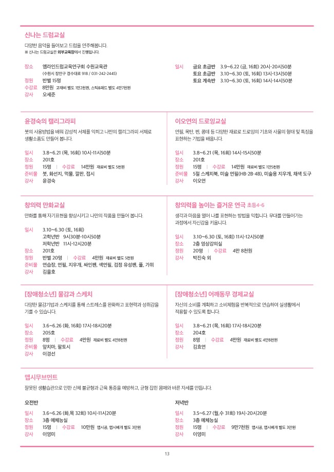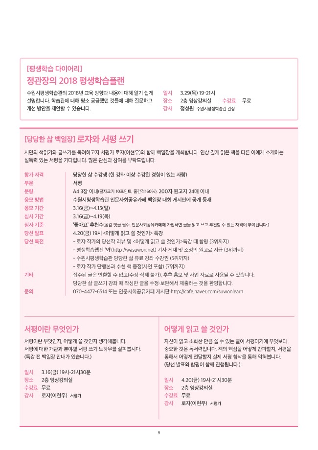 [공지] 수원시평생학습관 2018년 1학기 모집 안내
