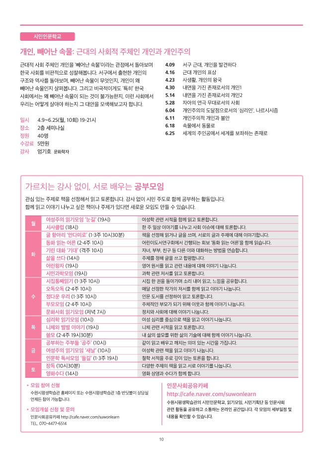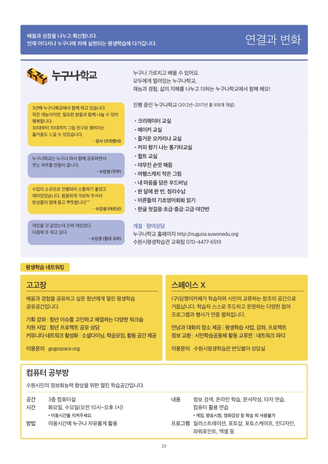 [공고] 2018 수원시평생학습관 학습동아리실 사용 신청 안내