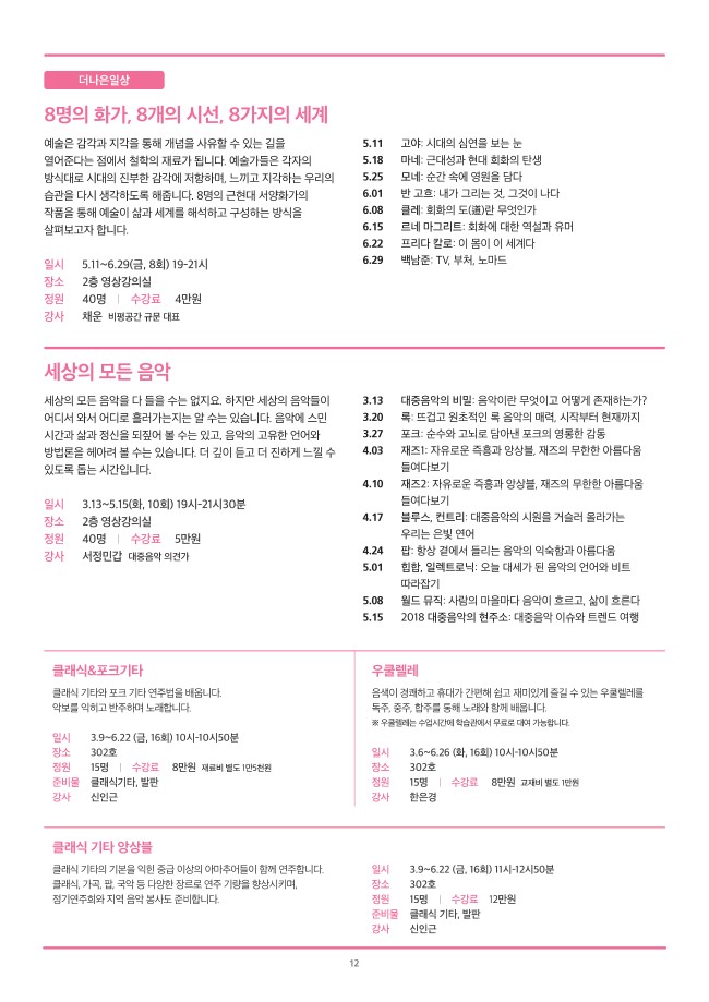 2018년 1학기 수강생 모집은 2월 8일부터 시작됩니다.