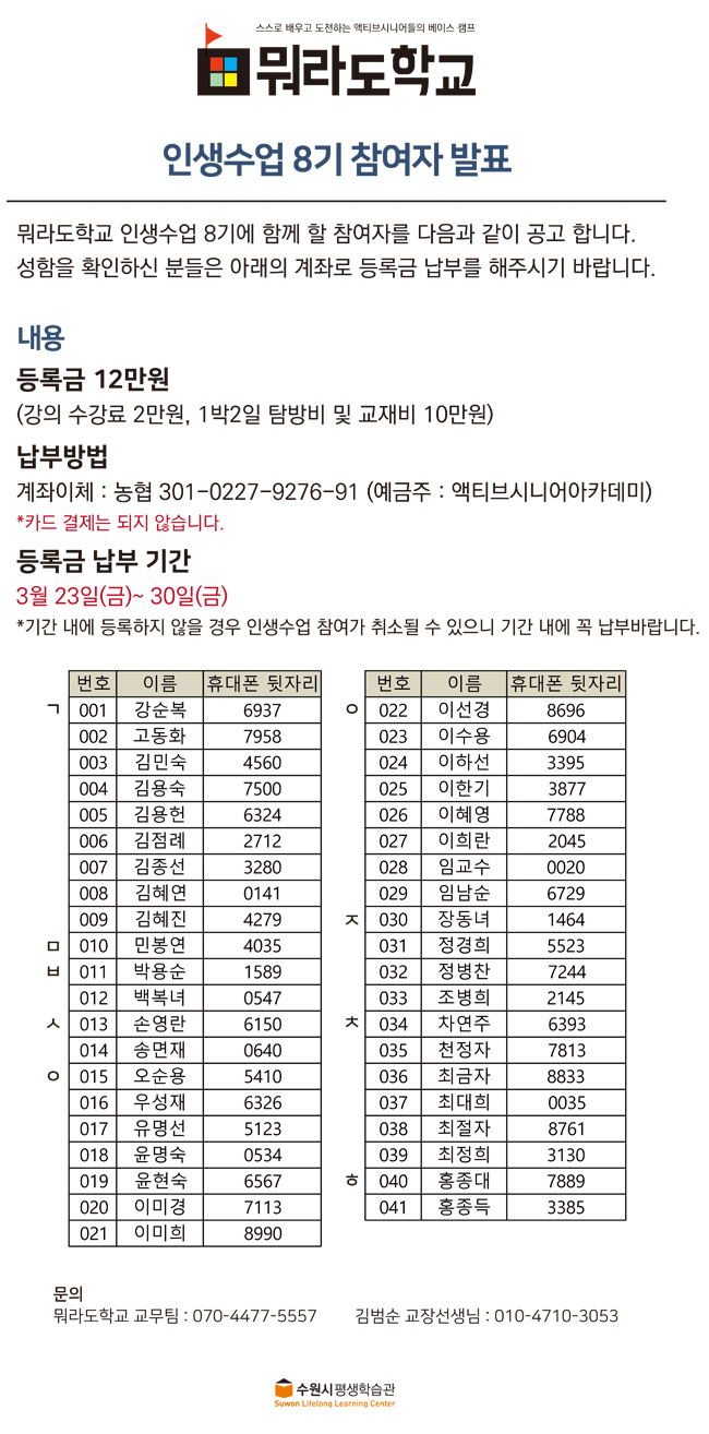 인생수업 8기 참여자를 발표합니다.
