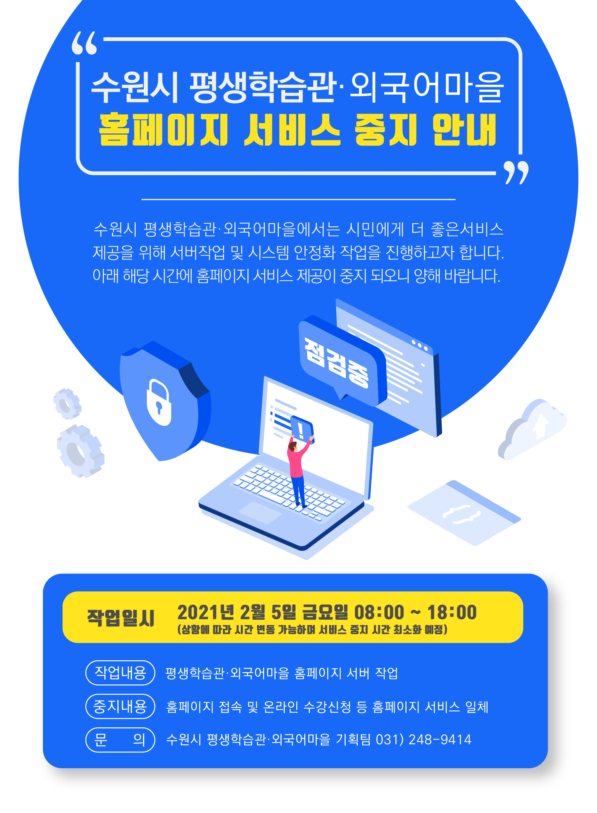 수원시 평생학습관 · 외국어마을 홈페이지 서비스 중지 안내(2/5)