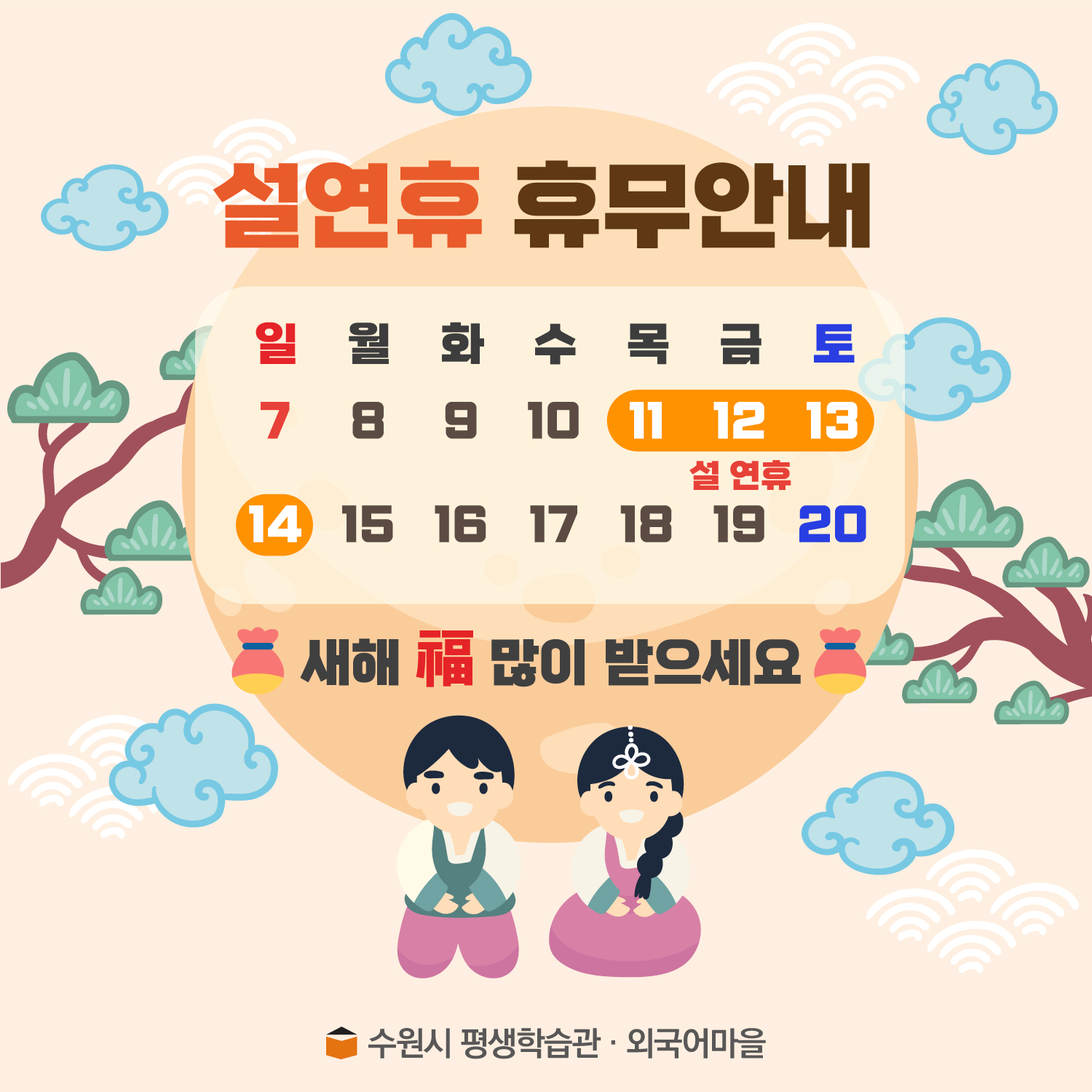 수원시 평생학습관 · 외국어마을 설연휴 휴무안내