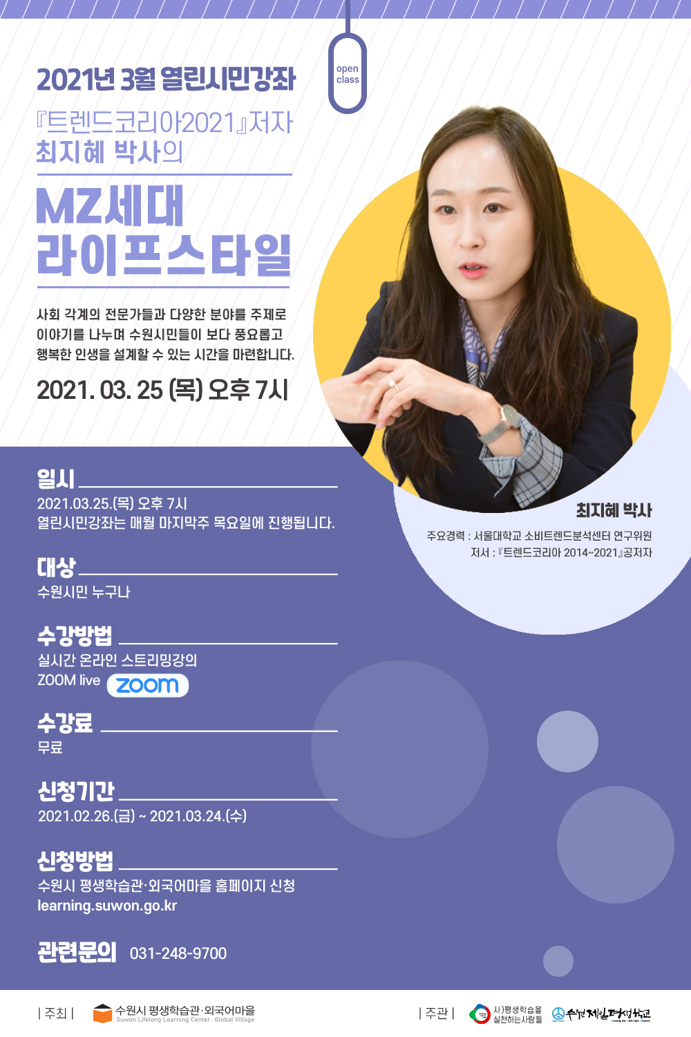 [3월 열린시민강좌] 트렌드코리아2021 저자 최지혜 : MZ세대 라이프스타일