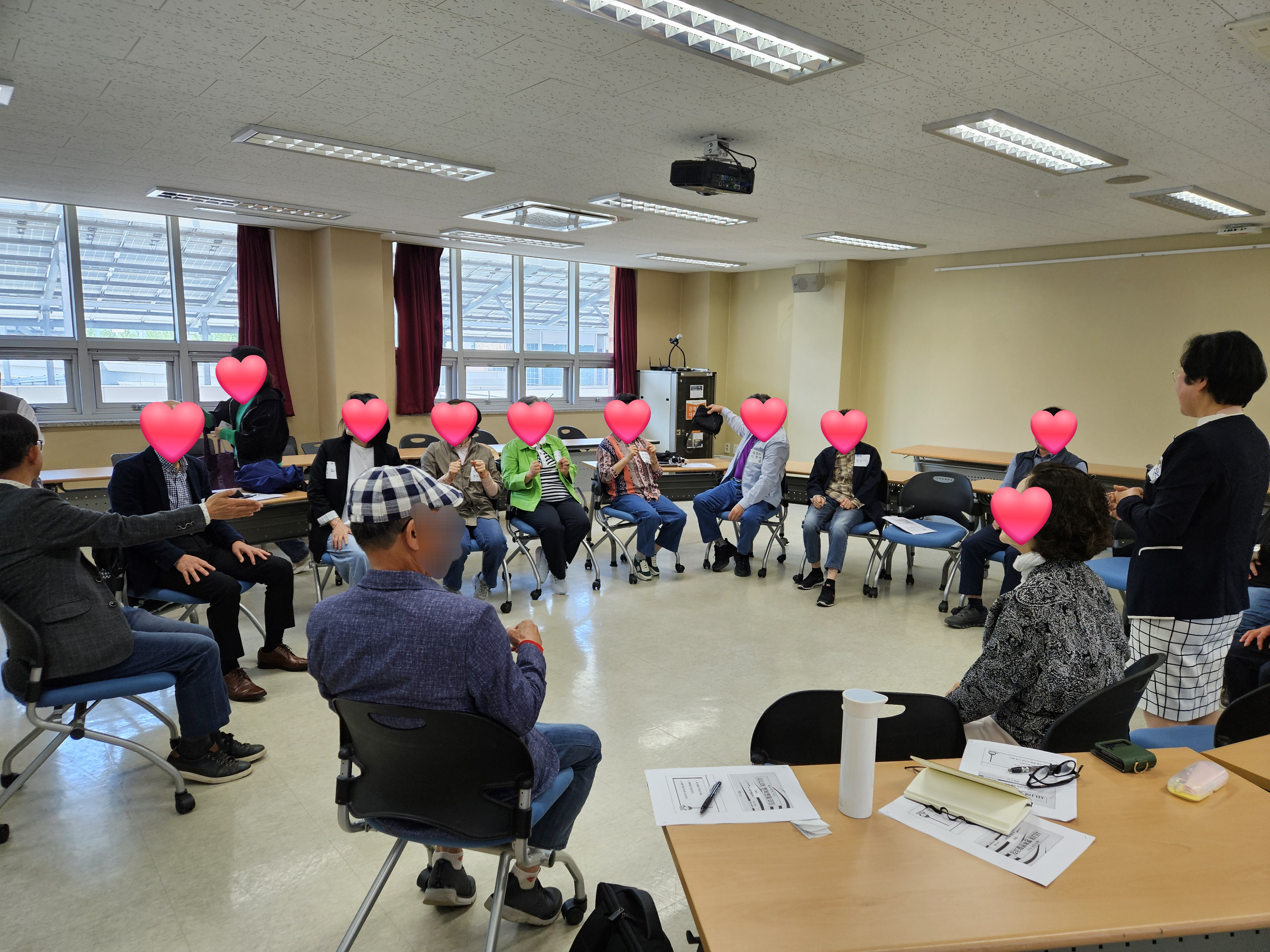 첫 시간은 아이스브레이킹으로 가볍게 몸을 푸는 손바닥 운동으로 시작되었습니다. 간단한 동작이었지만, 같이 구호를 외치고 웃으며 따라하다 보니 처음의 어색함이 조금씩 풀렸습니다. 이어진 자기소개 시간에는 각자 자신을 한 문장이나 단어를 활용해서 소개하는 방식으로 진행되었습니다. “행복한”, “희망”, “언제나 웃는” 등 자신을 표현하는 말들이 하나둘 쌓이면서 자연스럽게 서로에 대한 공감이 생겨났습니다.