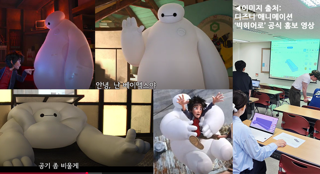 10년 전 개봉한 이 작품에는 하얗고 말랑말랑한 큰 몸에 동글동글한 얼굴, 온화한 말투로 주인공 소년을 도와주는 ‘베이맥스’라는 로봇이 등장합니다. 귀엽고 힐링되는 이미지로 많은 사랑을 받았던 것으로 기억하는데 이번 소프트 로봇 수업에서 베이맥스가 언급되어 반가웠습니다. 강사님 말씀에 따르면 실제로 많은 로봇 연구자들이 애정하는 워너비 로봇 캐릭터 중 하나라고 합니다.