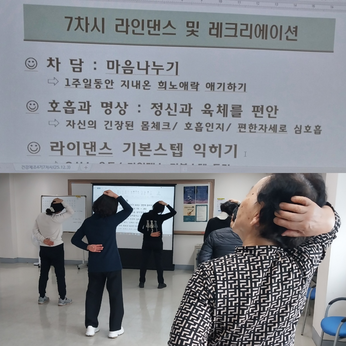 사람들의 온기, 웃음, 활력이 가득한 7회 차 시니어 건강 체조 수업 현장이었다.