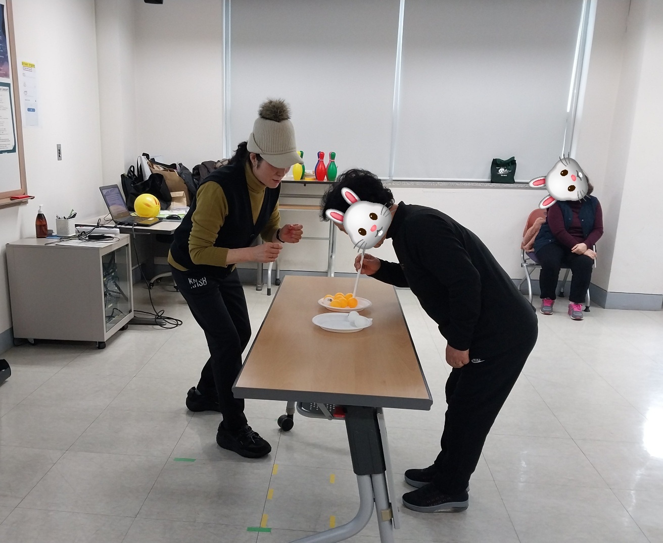 두 번째 시간: 집중력·심폐기능을 깨우는 미니 게임으로 탁구공을 빨대로 옮기기!